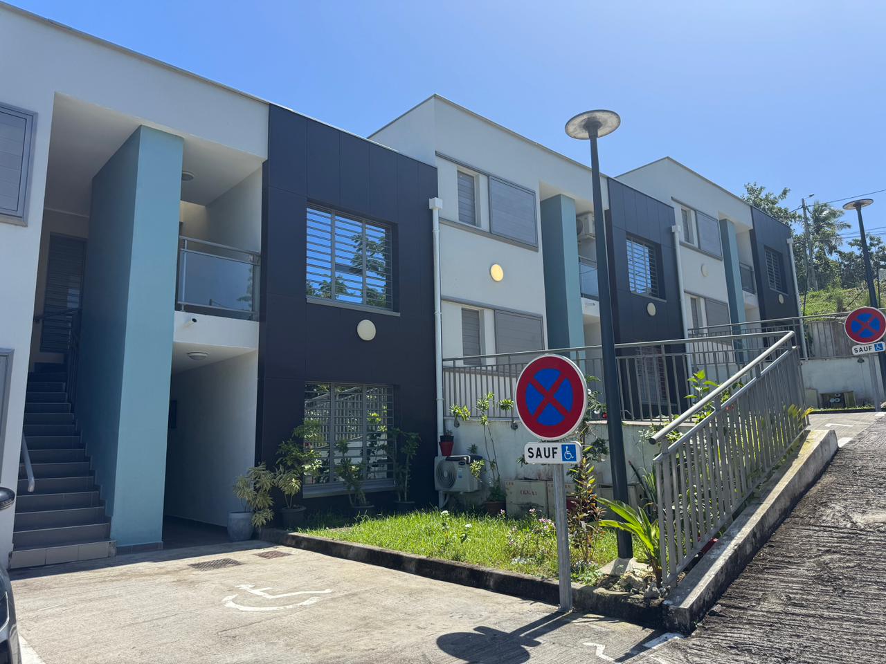 Construction de 10 logements neufs en accessibilité de type T3 à R+1 en bande. Le projet se décompose en 5 bâtiments implantés en escalier afin de s’adapter le mieux à la pente du terrain. Les villas de type contemporaines en toiture terrasses seront construites en béton armé peint de couleurs pastelles distinctes afin de donner un rythme aux façades